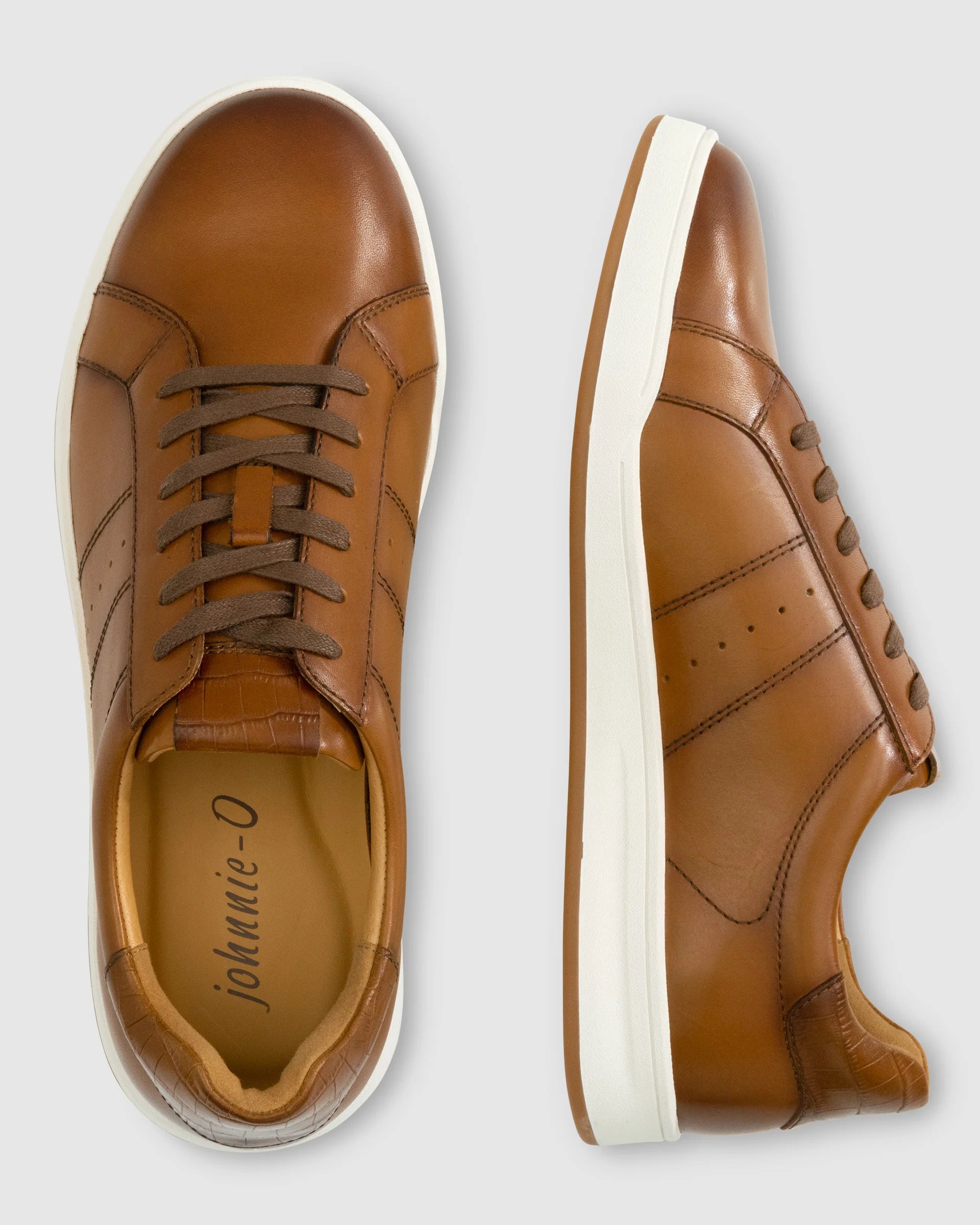 This leather sneaker is designed to offer athletic comfort with a modern luxury aesthetic. Featuring hand-burnished genuine leather uppers, a genuine calfskin lining and embossed croc trim, it's the perfect hybrid for your dressy occasions.